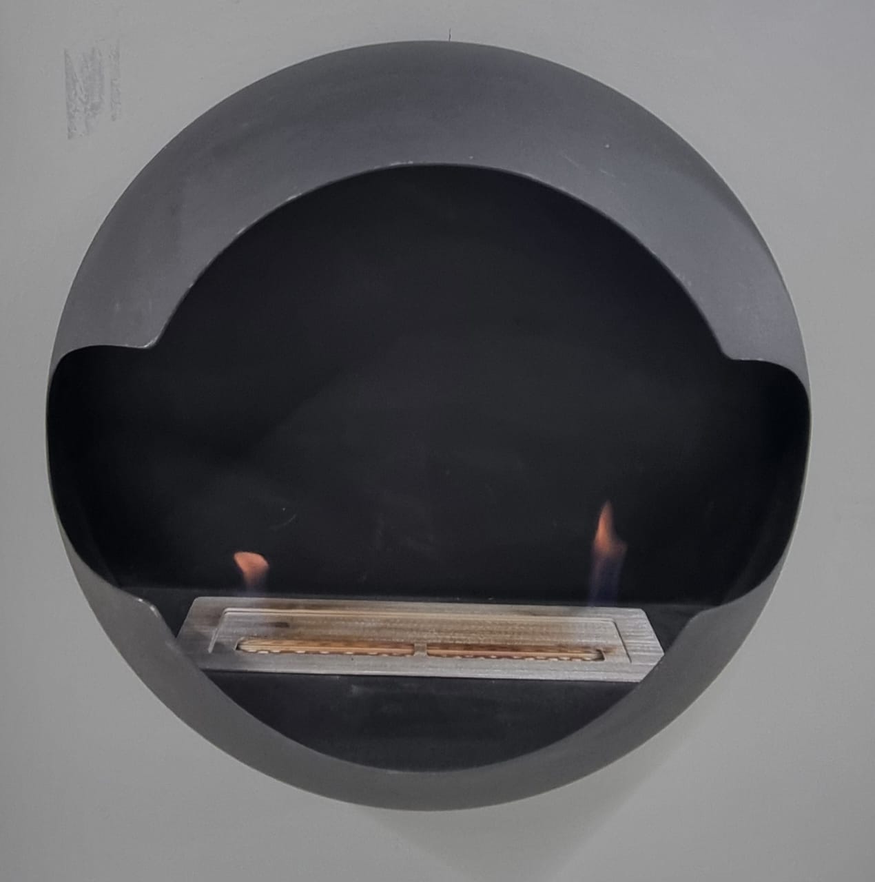 Современный био камин Firezo Apple круглой приплюснутой формы настенного типа для квартиры или дома – находка для интерьера в стиле лофт, хай-тек и других, где приветствуется минимализм и интересные детали.