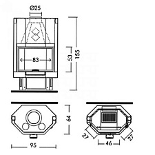 В топке имеется система длительного горения и система чистого стекла. Имеется возможность для подвода дополнительного воздуха из других помещений или улицы для процесса горения, что сводит к минимуму выжигание кислорода в помещении во время работы камина.